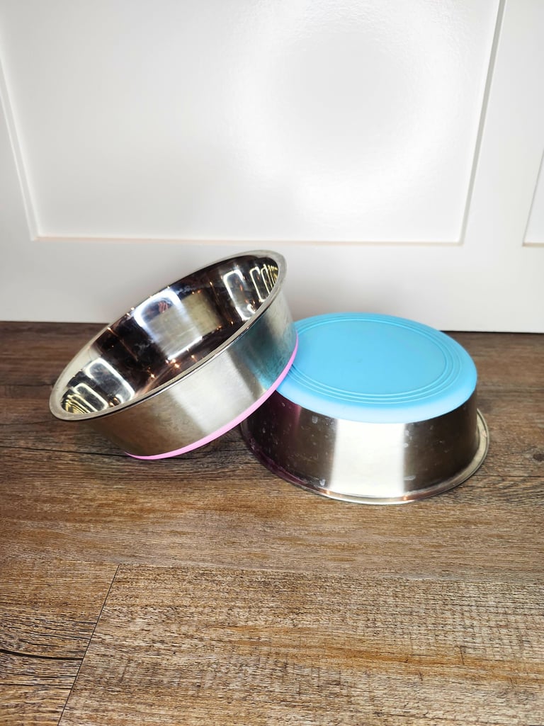 Bowls that feature a rubberized base or ring to stop them from sliding.
