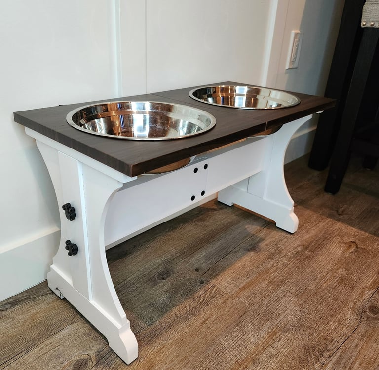 Bowls Elevated on a stand or frame, bringing food closer to the dog's mouth.